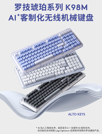 | 键盘 | 无线蓝牙电竞 | 罗技无线蓝牙AI机械键盘K98M | 410 | 黑/白/蓝色现货 | 透明外壳/热插拔大理石轴/98键/Bolt接收器/USB-C充电/AI支持 | |||||||||||